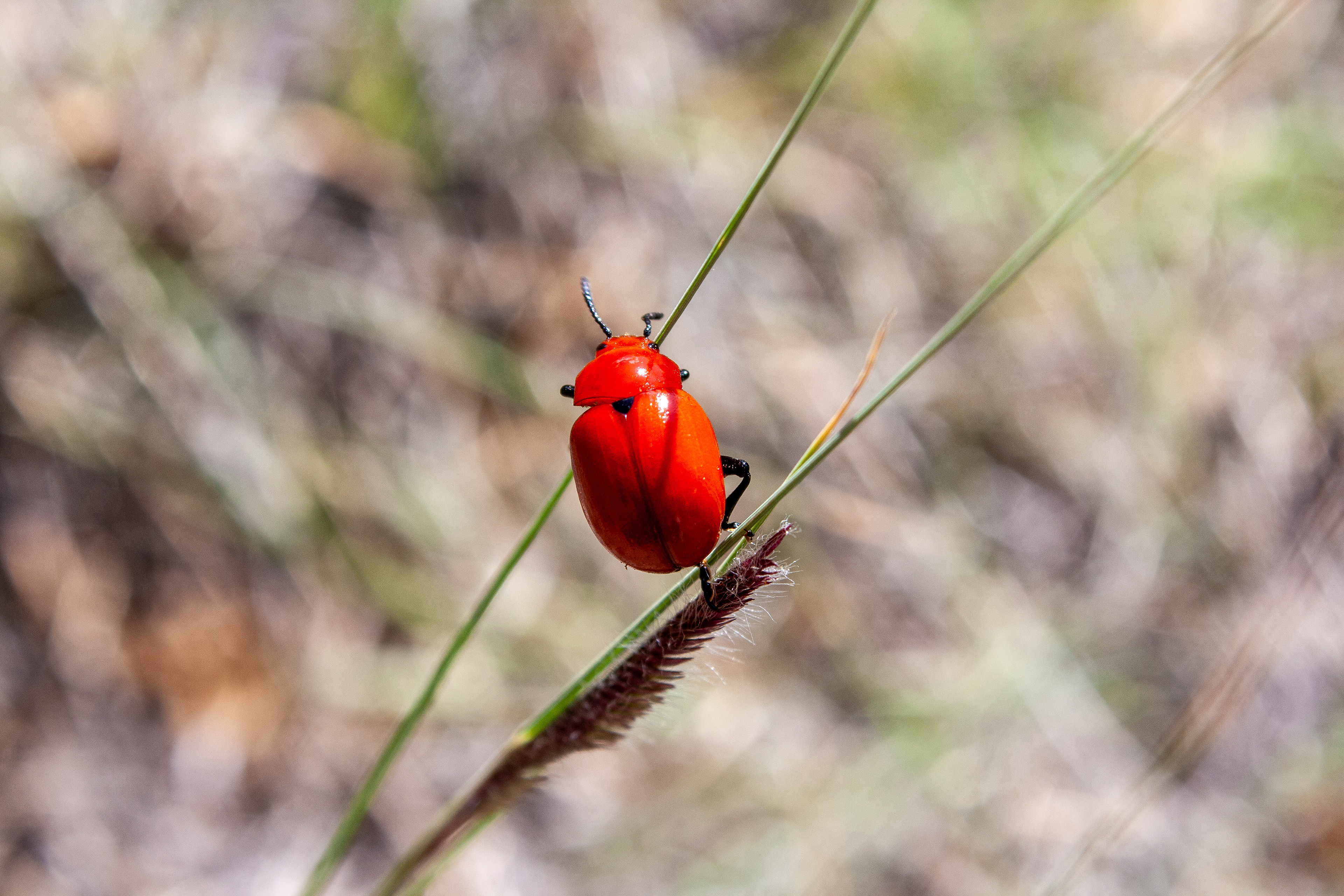 Fire Beetle on Eyelash Grass